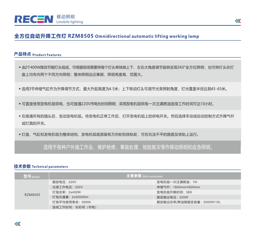 全方位自動升降投光燈 RZM8505